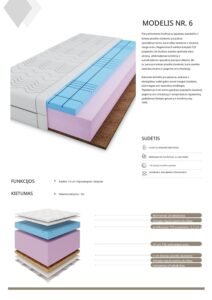 Medžiaga: 10 cm T25 poliuretano putos, 3,5 cm storio T30 pjaustytos putos, kokoso kilimėlis, nuimamas, skalbiamas užvalkalas