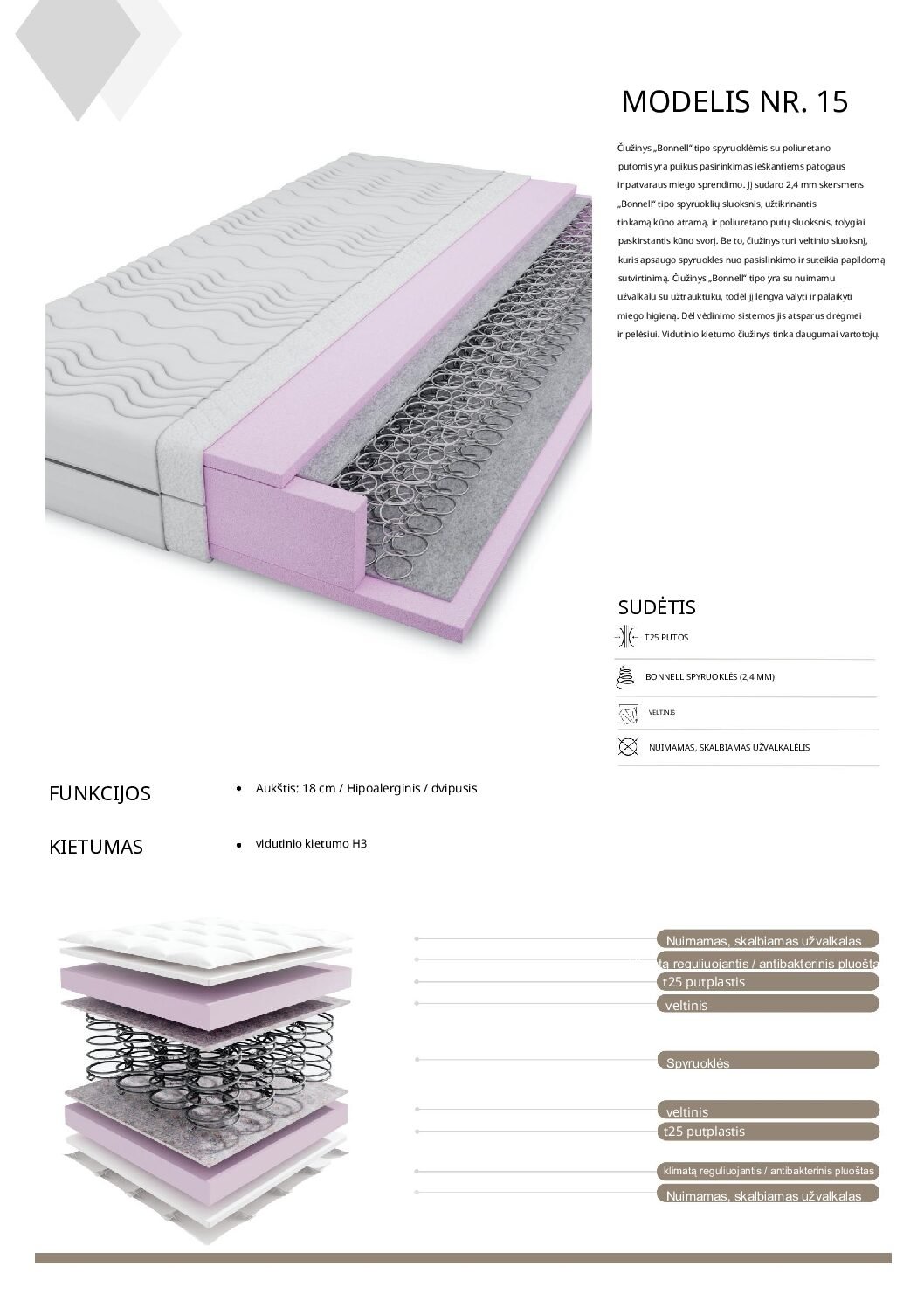 Medžiaga: spyruoklės, T28 putos, veltinys, nuimamas, skalbiamas užvalkalas