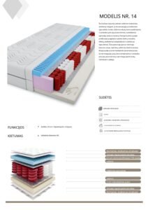 Čiužinys su poliuretano putomis ir kontūriniu porolonu, 14 cm. storio