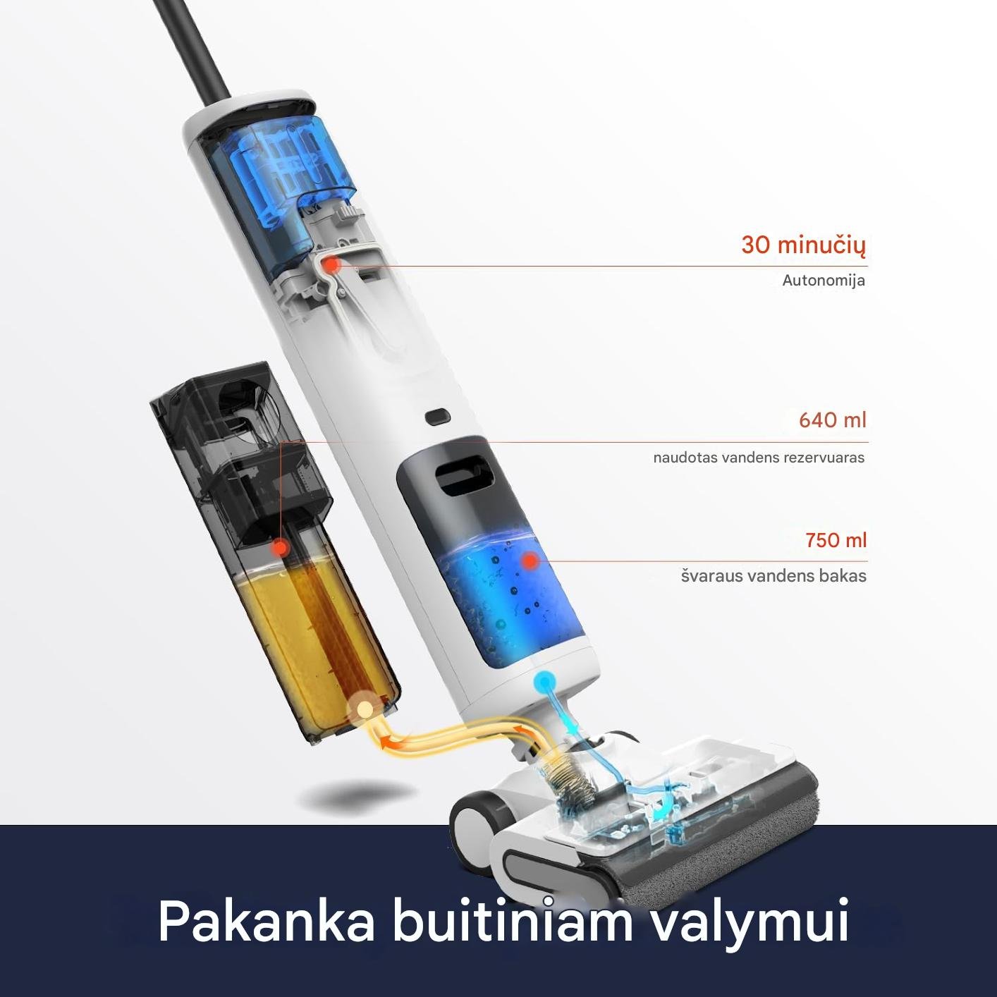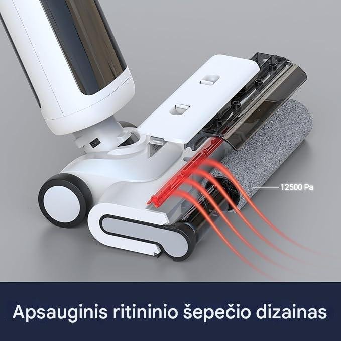 Galingas variklis su 12500 Pa siurbimo galia: Galingu varikliu grindų šluostė pasižymi didele 12500 Pa siurbimo galia, kuri efektyviai sugeria nešvarumus ir dulkes nuo grindų ir atgaivina jūsų namus.