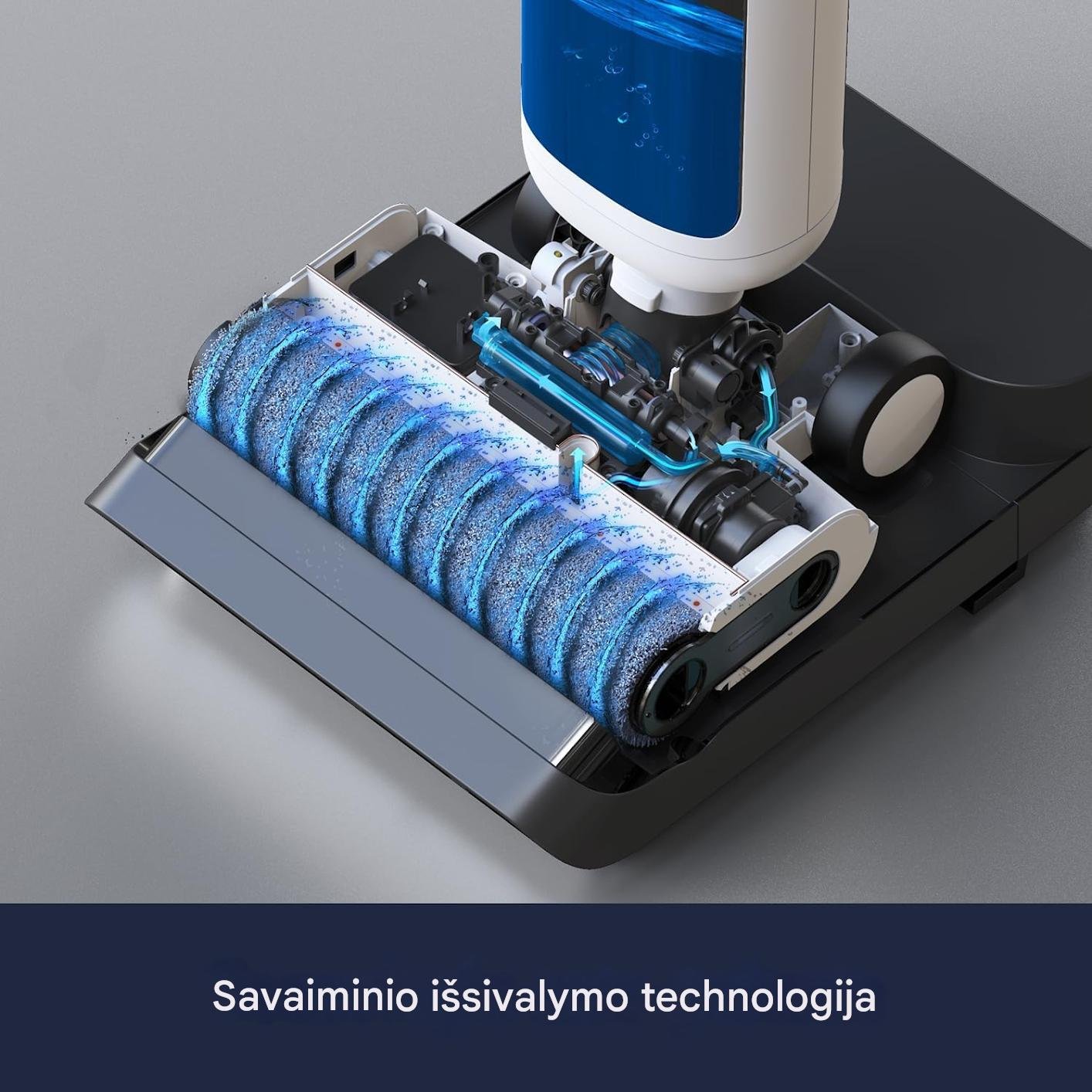 Savaiminis valymas didesniam komfortui: Po naudojimo šlapio valymo dulkių siurblys automatiškai valo savaiminio valymo režimu. Nešvarumai nuplaunami nuo cilindrinio šepečio. Daugiau nereikia lenktis, kibiro ar gręžti. Tai taupo laiką ir jėgas. Idealiai tinka alergiškiems žmonėms ir naminių gyvūnėlių šeimininkams.