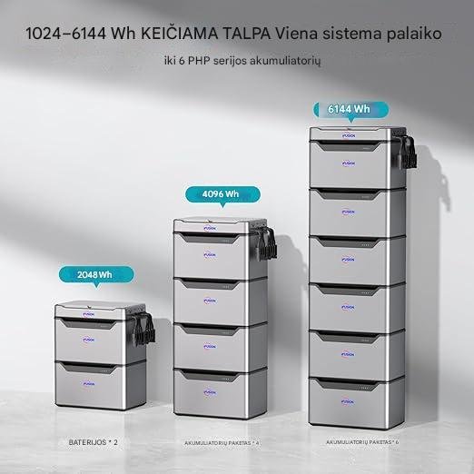 Maksimalus 6144 Wh išplėtimas individualiems energijos poreikiams: Palaiko iki 6 lygiagrečių IFT1024 akumuliatorių, kad talpa būtų nuo 1024 Wh iki 6144 Wh. Sklandžiai pritaikykite kaupimo talpą prie savo saulės energijos gamybos, nesvarbu, ar tai mažos balkonų elektrinės su kaupimu, ar didesni energijos projektai. Moduliniai komponentai garantuoja lankstų naudojimą bet kokio dydžio sistemai.