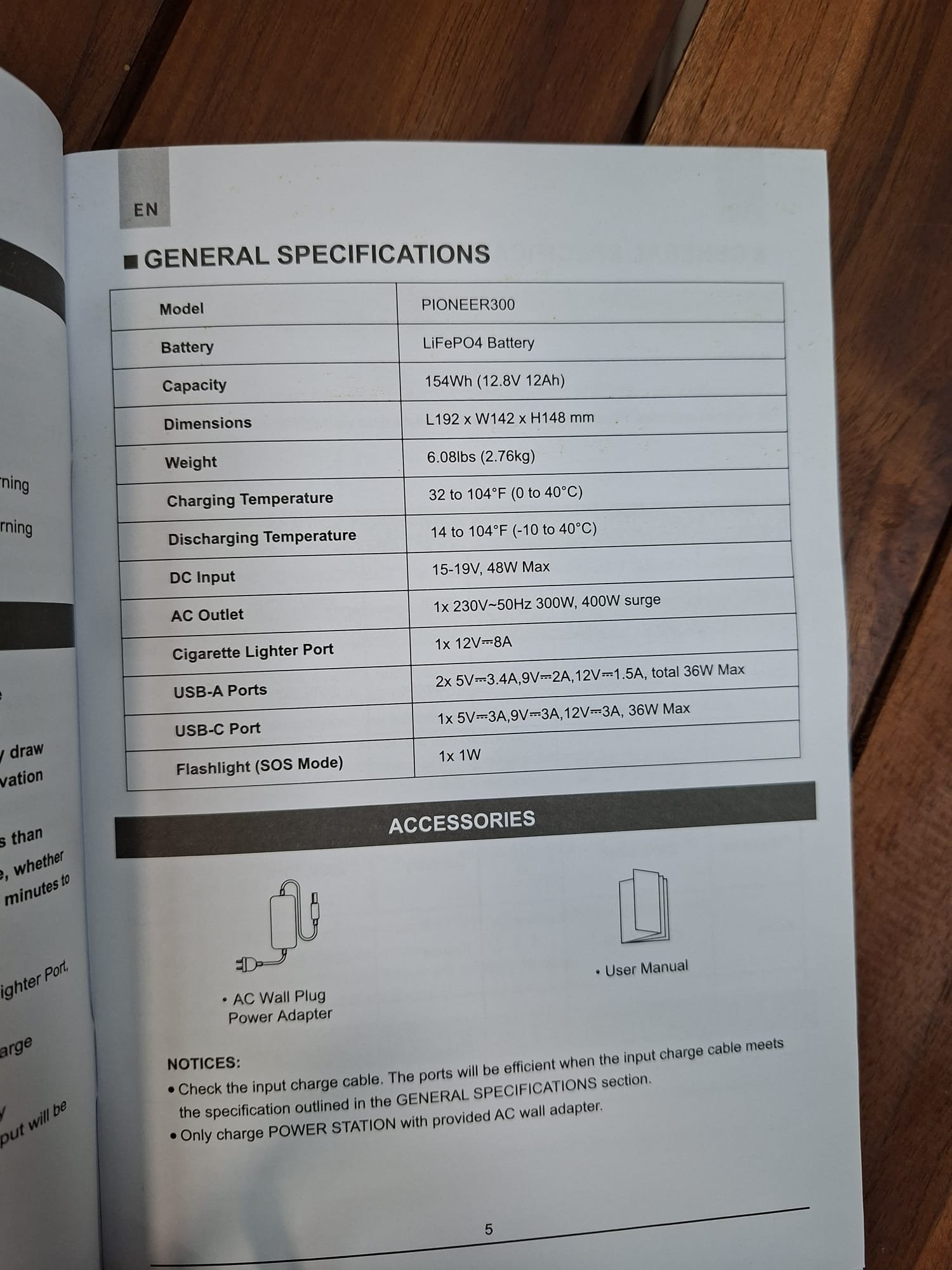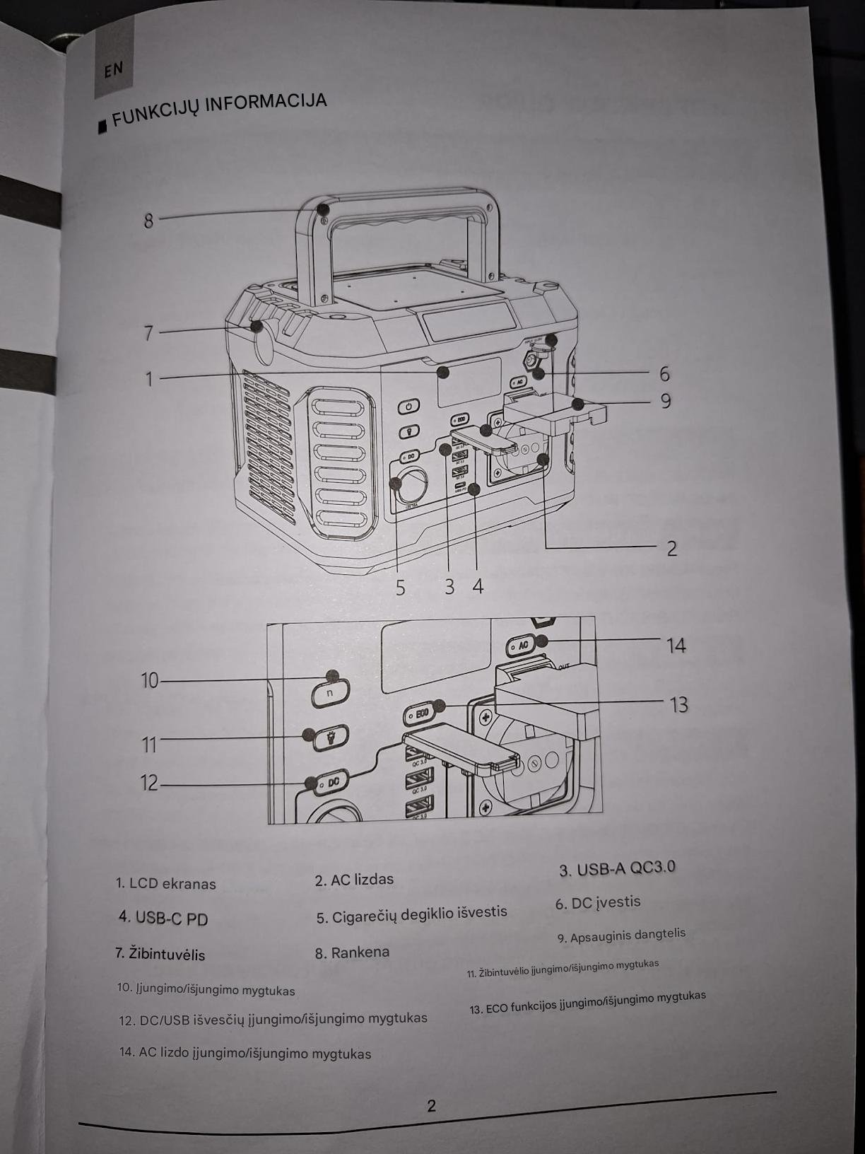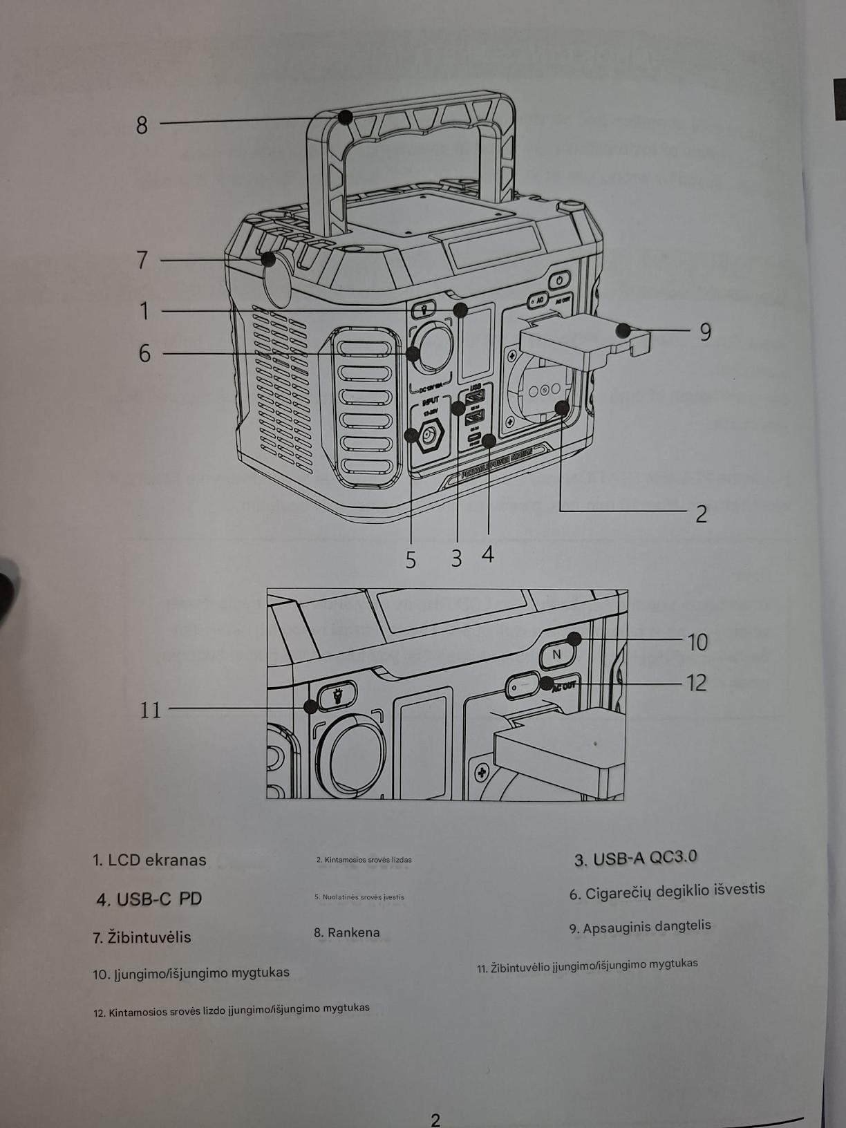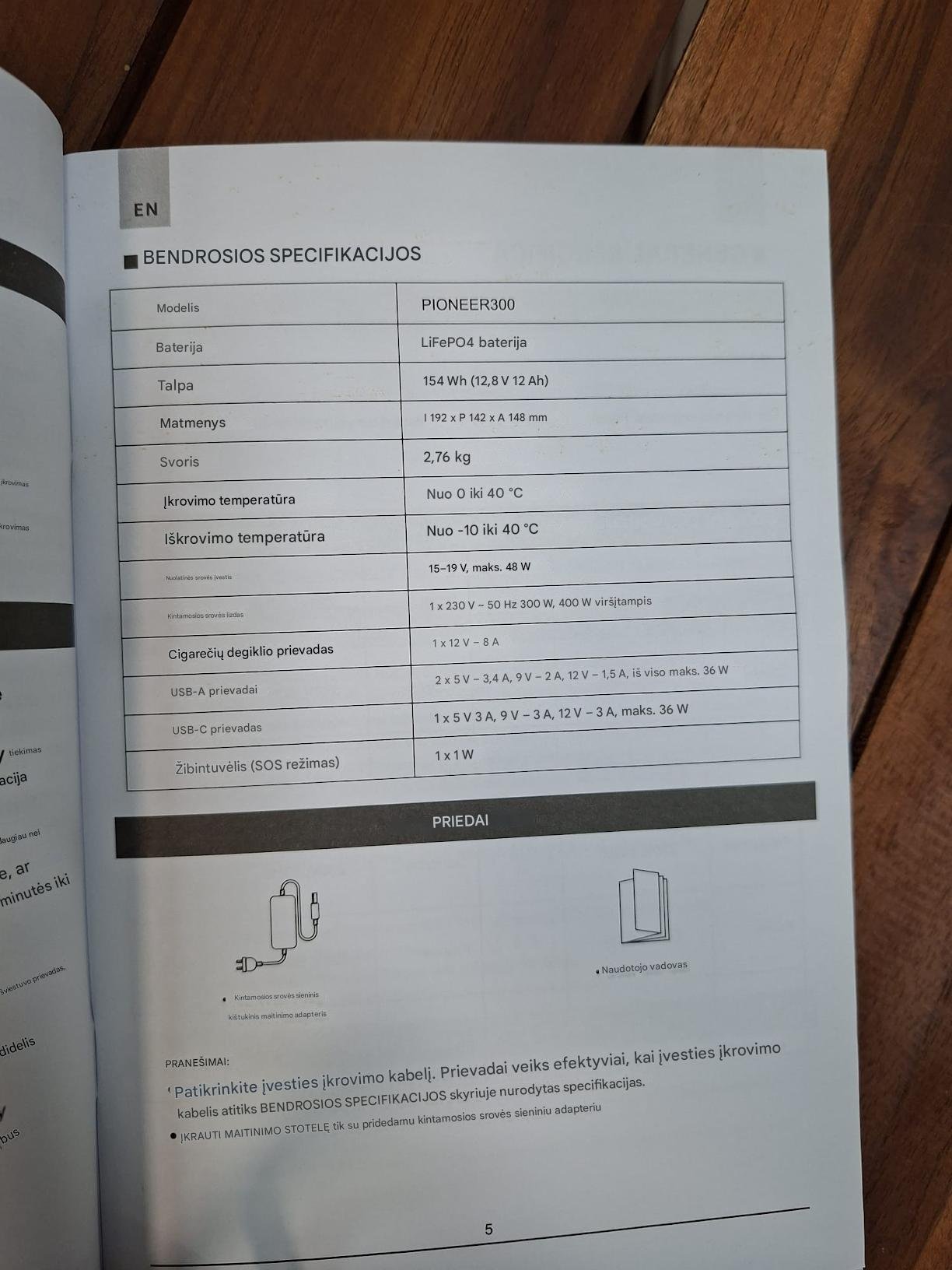 Kintamosios srovės lizdas: 1 x 230 V – 50Hz, 300W, 1400W viršįtampis