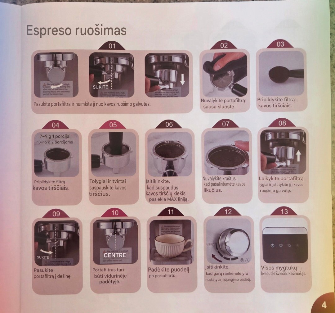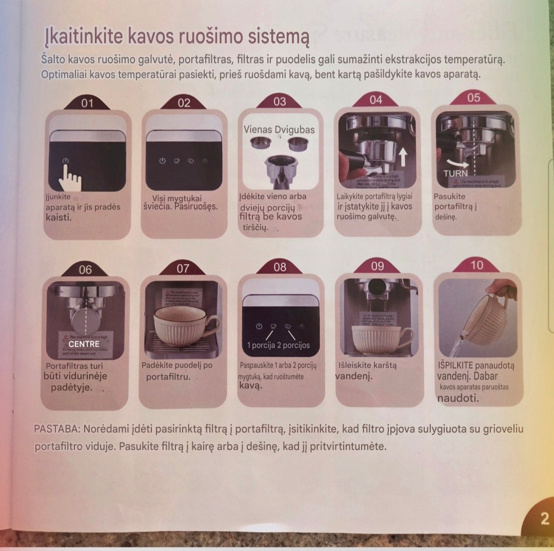 Didelis LED jutiklinis ekranas: kavos aparato portafiltras su dideliu LED jutikliniu ekranu: aiškiai matydami virimo režimus ir virimo procesą, galite pasirinkti mėgstamą kavą vienu mygtuko paspaudimu!