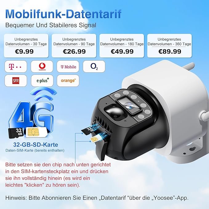 6. Paprastas montavimas ir nuotolinė prieiga: įdėkite SIM kortelę (pridedama), įrenkite saulės stebėjimo kamerą lauke ir atsisiųskite programėlę YOUSEE. Programėlę galite ieškoti ir atsisiųsti iš „Google Play Store“ arba „Apple App Store“ arba nuskaityti QR kodą instrukcijose. Įdiegę tiesiog prijunkite išmanųjį telefoną prie kameros ir galėsite bet kada ir bet kur stebėti tiesioginę transliaciją. Visus vaizdo įrašus galima leisti arba atsisiųsti tiesiai iš programėlės.