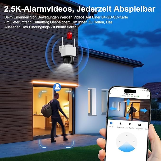 3. Išmanusis PIR judesio aptikimas su 4G dvipusiu garsu – matykite, aptikkite ir reaguokite tiesiogiai: dėl tikslių PIR jutiklių kamera patikimai aptinka žmonių judėjimą ir siunčia tiesioginius tiesioginius pranešimus į jūsų išmanųjį telefoną – be „Wi-Fi“, tiesiogiai per 4G. Naudodami įmontuotą mikrofoną ir garsiakalbį galite realiuoju laiku kalbėtis su lankytojais, tiekėjais ar net įsibrovėliais – nesvarbu, kur esate.