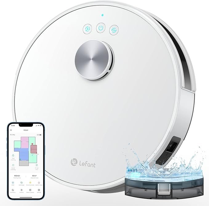 „Lefant M1“ robotas dulkių siurblys su šluoste ir  patalpos žemėlapiu, 4000Pa, LDS navigacija, SLAM algoritmas, virtuali riba, 32 cm skersmens lazerinis robotinis dulkių siurblys, „Wi-Fi“ / programėlė / „Alexa“ valdymas