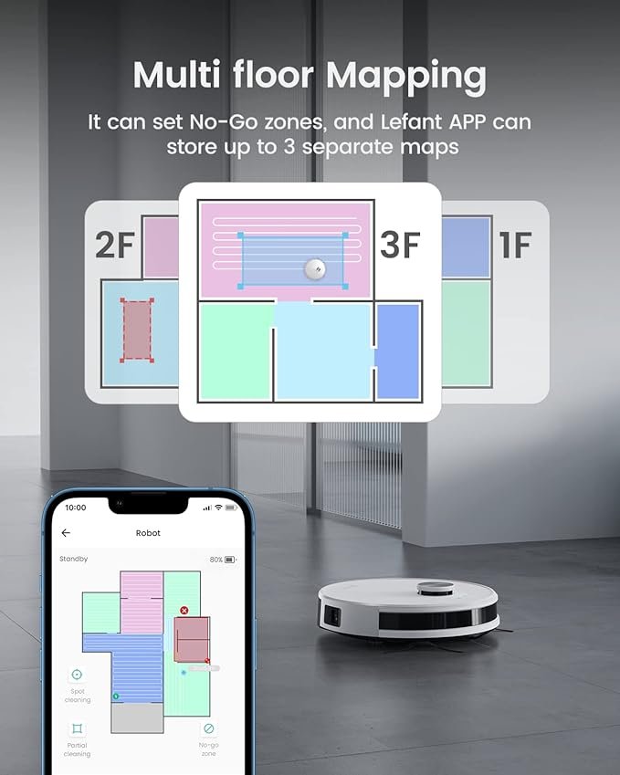 „Lefant“ robotas dulkių siurblys, stiprus siurbimas, 120 min. veikimo laikas, plonas, tylus, automatinis įkrovimas, „Wi-Fi“ / programėlės / „Alexa“ valdymas, idealiai tinka naminių gyvūnėlių plaukams, kietoms grindims ir kasdieniam valymui, M210