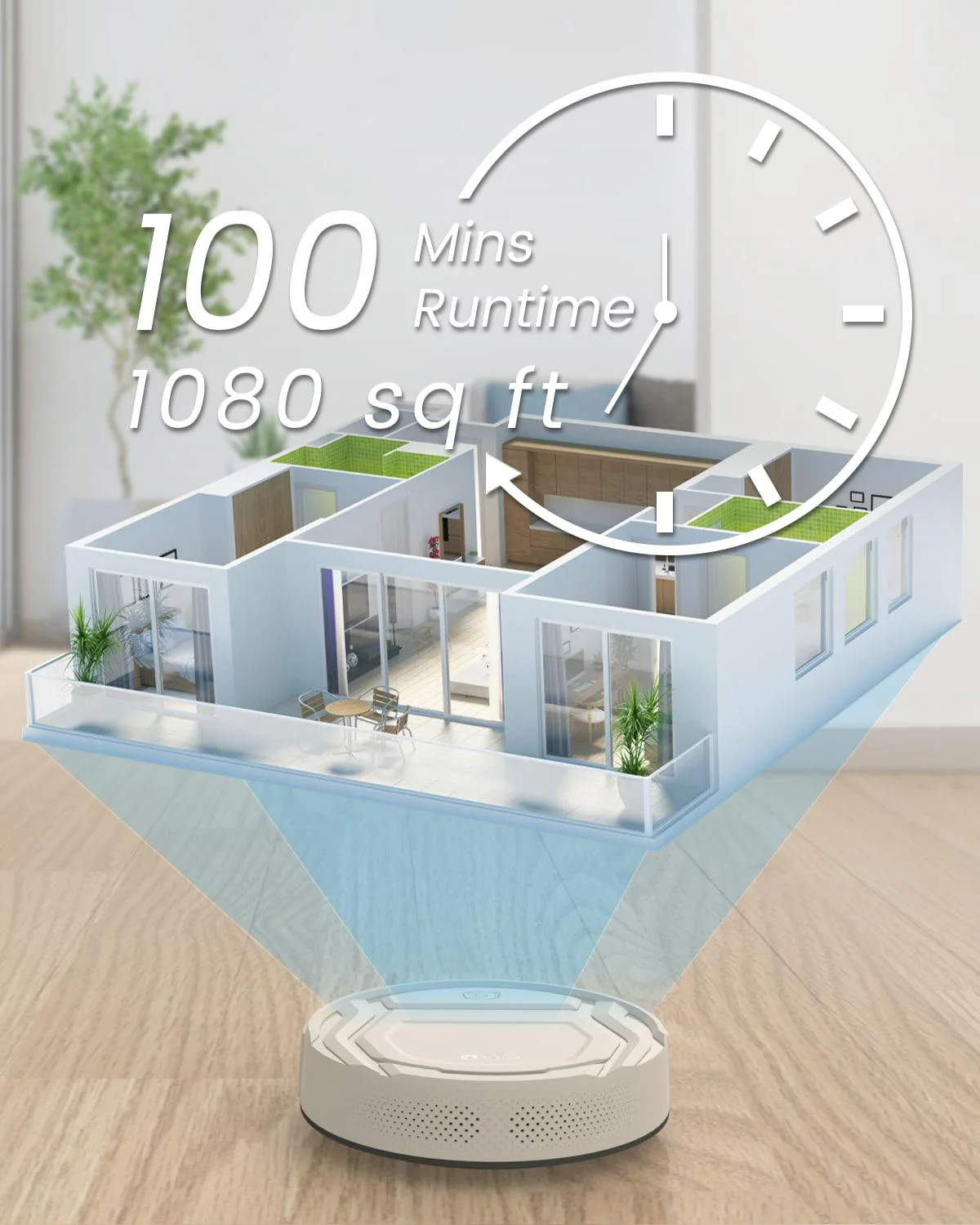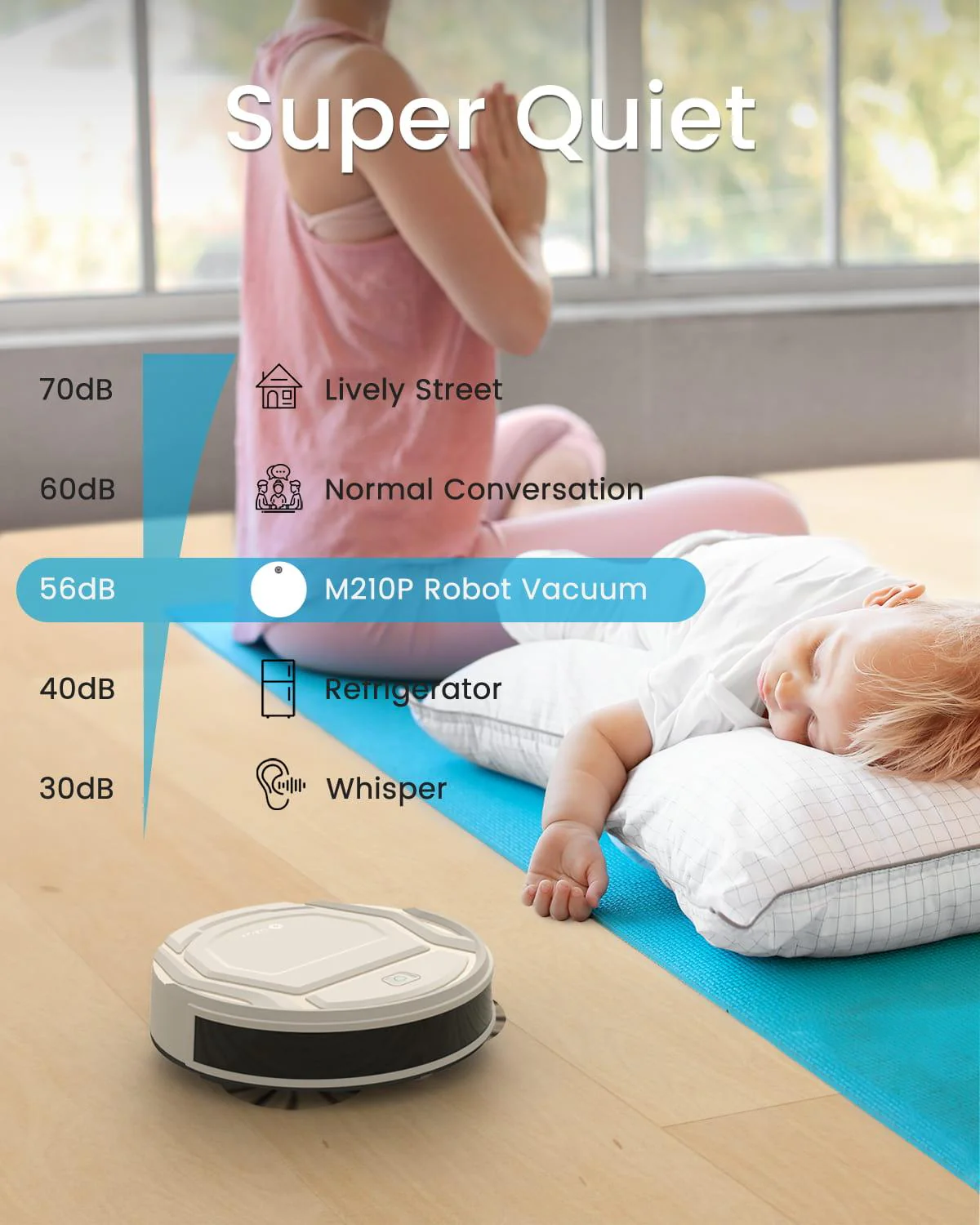 【Ilgai veikianti baterija】: „Lefant M210“ robotas dulkių siurblys naudoja ličio geležies fosfato baterijas ir veikia iki 120 min. Pastaba: Veikiant mažo siurbimo režimu.