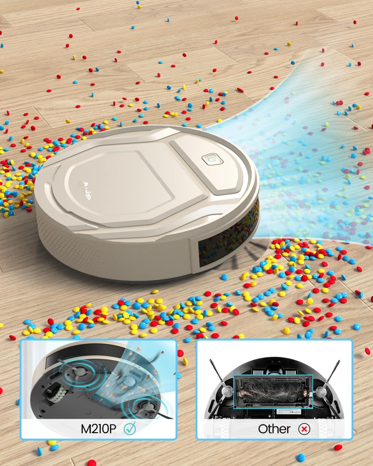 【Mažas korpuso dizainas】: Ar vis dar nerimaujate, kad dulkių siurblys negali išsivalyti po baldais? Šis „Lefant M210“ 28 cm. skersmens ir 7,2 cm. aukščio siurblys lengvai veikia po lovomis, sofomis ir kitais baldais arba aplink juos, užtikrindamas kruopštų valymą ir didelį padengimą.