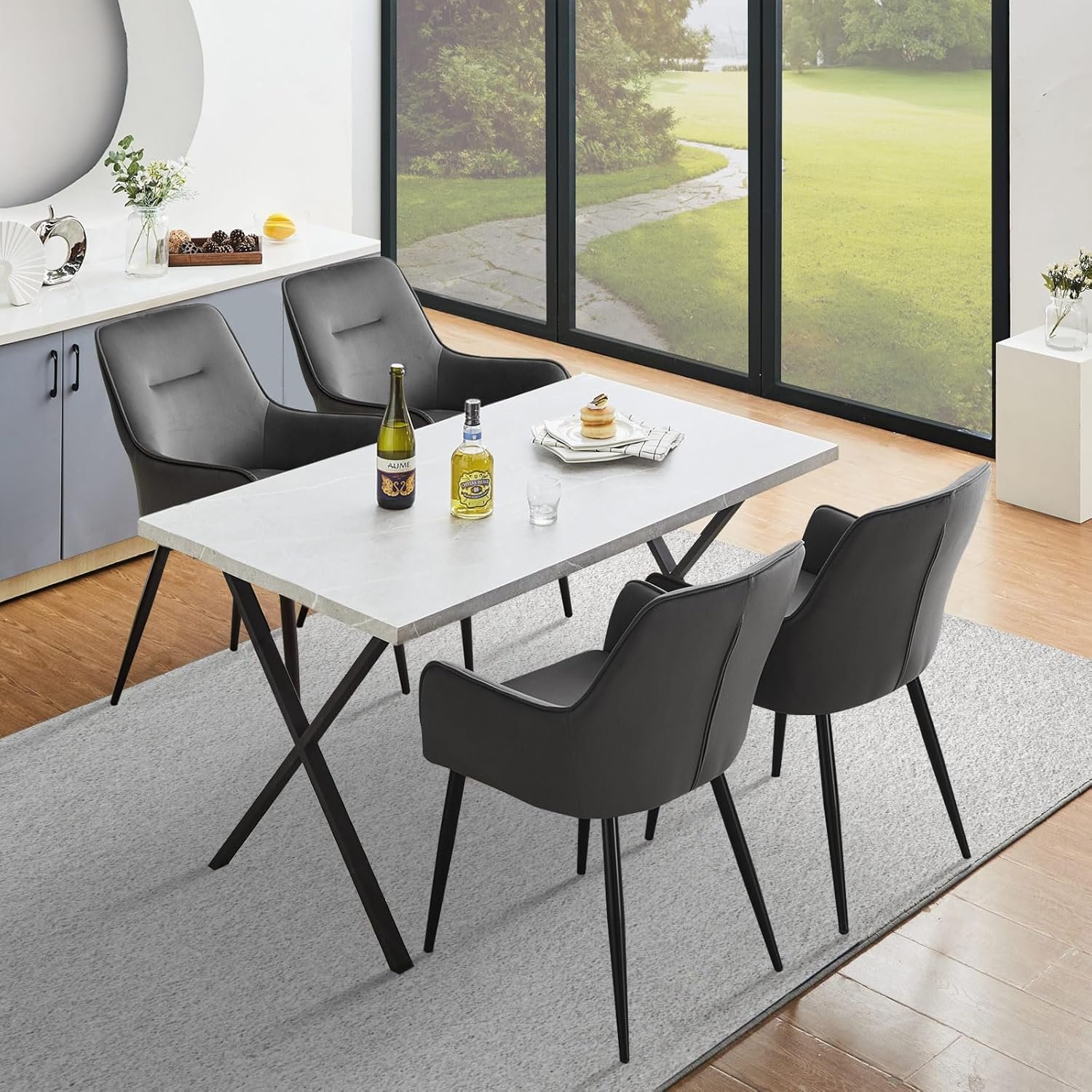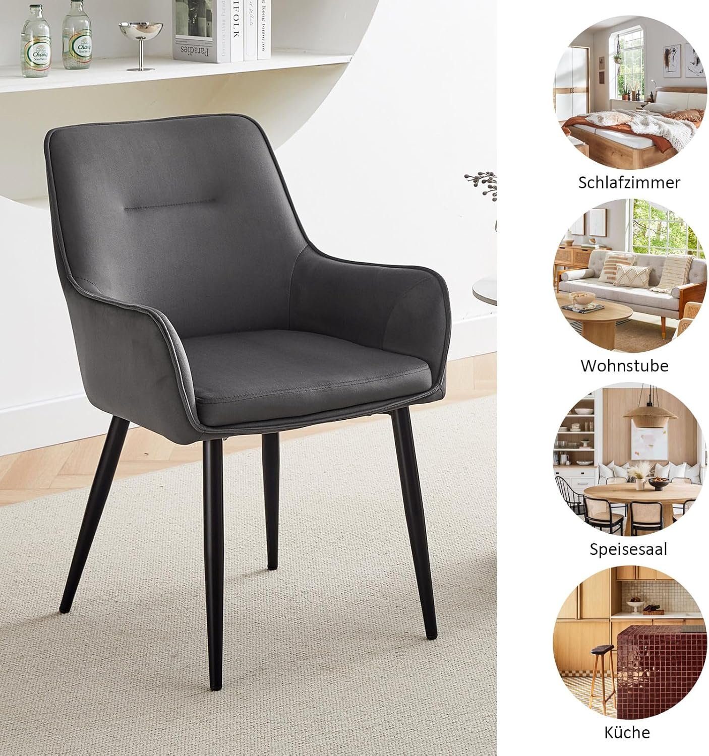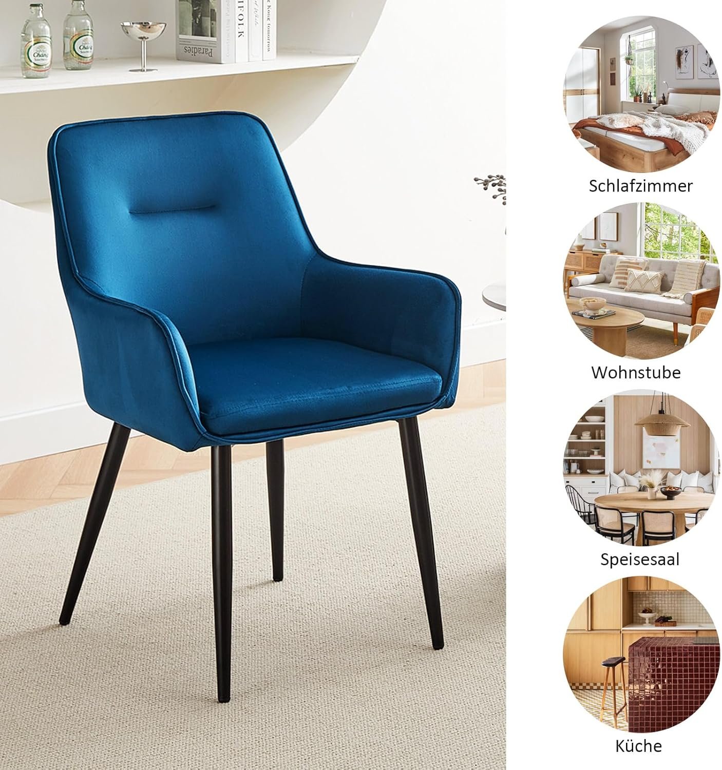 Kvėpuojančios ir odai draugiškos aukščiausios kokybės aksominės medžiagos apmuštos valgomojo kėdės: laisvalaikio valgomojo kėdės pagamintos iš aukštos kokybės aksomo, yra patogios ir draugiškos odai, atsparios dilimui, labai laidžios orui ir minkštos sėdėti. Išskirtiniai siuvimo siūlai, lengva prabanga ir madingas dizainas sukuria vizualinį estetinį vaizdą namuose.