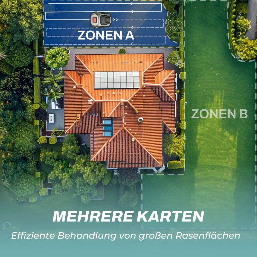 Kelių zonų padalijimas ir kliūčių vengimo nustatymas: naudodami „iSward“ programėlę galite lengvai sukurti kelias pjovimo zonas ir nustatyti fiksuotas kliūčių vengimo zonas. Kai išmanusis vejapjovė tęsia darbą, ji sklandžiai tęsia darbą ten, kur baigė, taip gerokai padidindama efektyvumą.